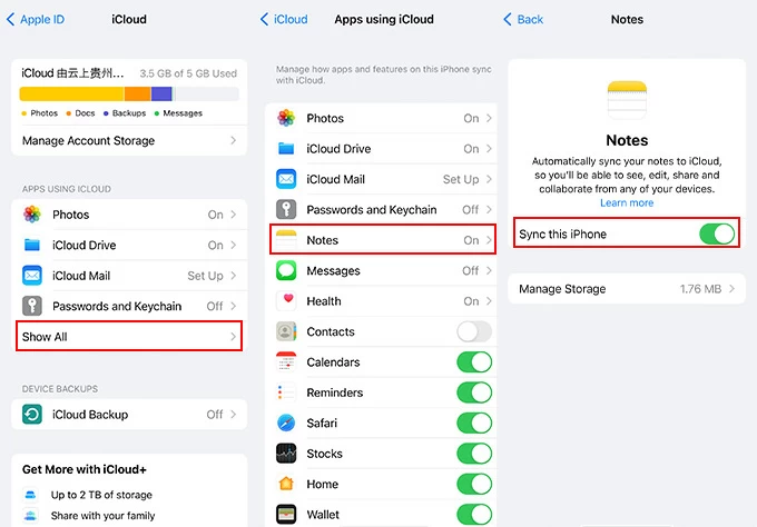 Using iCloud to sync notes from your iPhone to Mac could be easily done with a few simple steps. However, Apple offers only 5 GB of free storage for every iCloud user. And your notes can only be synced when your iCloud account has enough storage. For more space, it takes a monthly cost depending on the storage plan you choose.