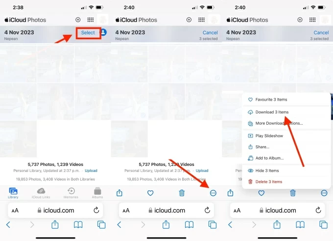 5. Tap more button in the lower right corner and select Download to get them on Photos app.