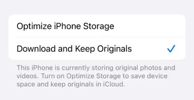 5. Select Download and Keep Originals to download full-resolution versions of all your photos and videos to your iPhone.