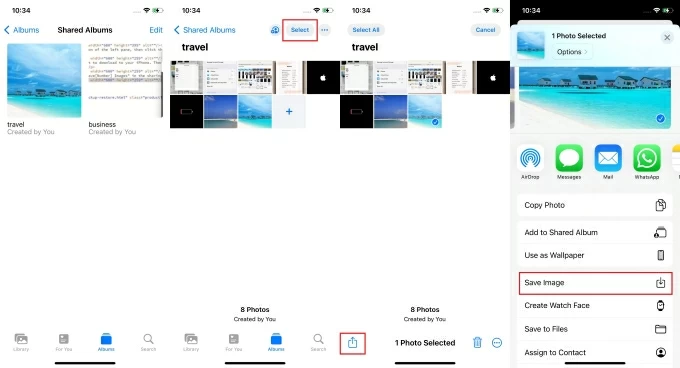 Unlike iCloud Photos, which syncs the entire iCloud photo library to iPhone, Shared Albums give you more control over which photos are shared and downloaded. Follow below to use Shared Albums to download a copy of photos from iCloud to an iPhone.