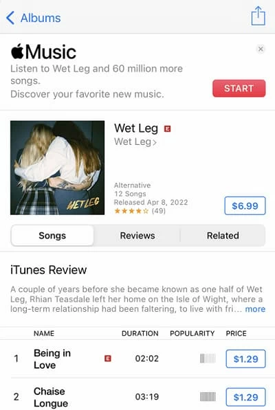 Note: You don't have to subscribe to Apple Music to download music to your iPhone from iTunes Store. It allows you to purchase a song or an album and download it to listen to offline.
