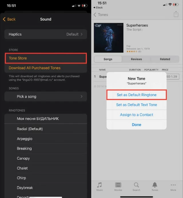5. When you're on Tones screen, search for the ringtone you like and download it. If required, you may purchase the tones firstly.