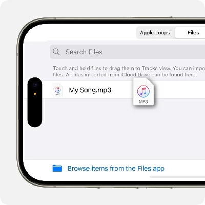6. Long-press the audio file and drag it to the GarageBand's Track view.