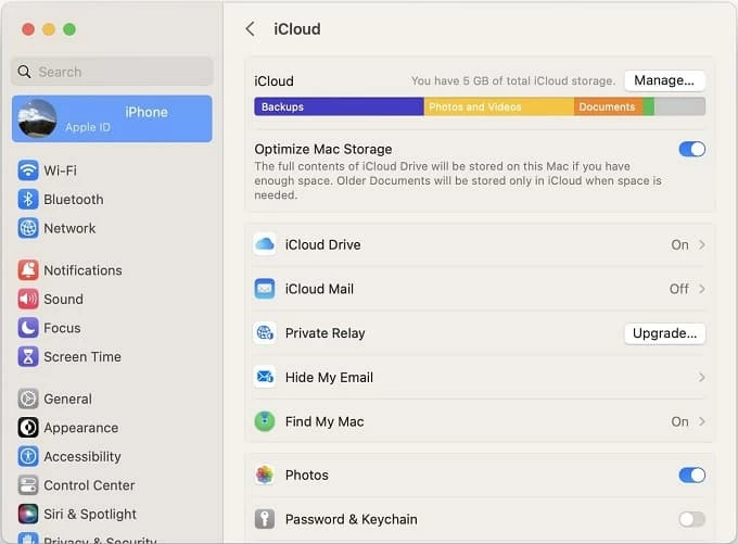 Step 3: Click on your Apple ID, move to the iCloud tab. Slide the slider next to Photos to enable iCloud Photos.