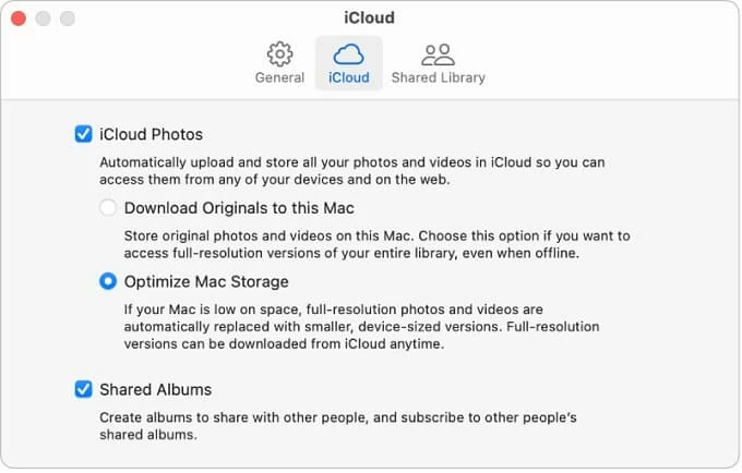 Step 4: Click Download Originals to this Mac under the iCloud Photos option.