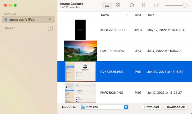 Here are the exact steps to import photos from your iPad to your Mac using the Image Capture.