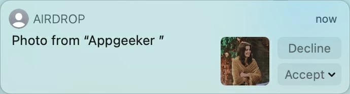 Step 4: Click the Accept button on your Mac. Once the transfer is complete, you can access the photos on your Mac in the Downloads folder or the location you specified.