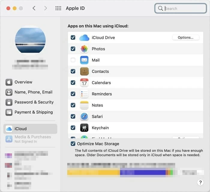 Move to your Mac. Let Photos app run. Open System Preferences from the Apple icon in the left-corner of your screen. In the next menu click on Apple ID. You will be greeted by this screen: