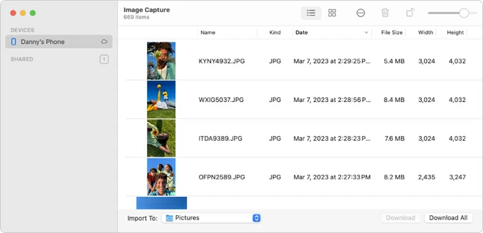 5. In the Import to section, select your SD card folder as the destination, then click Download or Download All to get the photos from iPhone on your SD card.