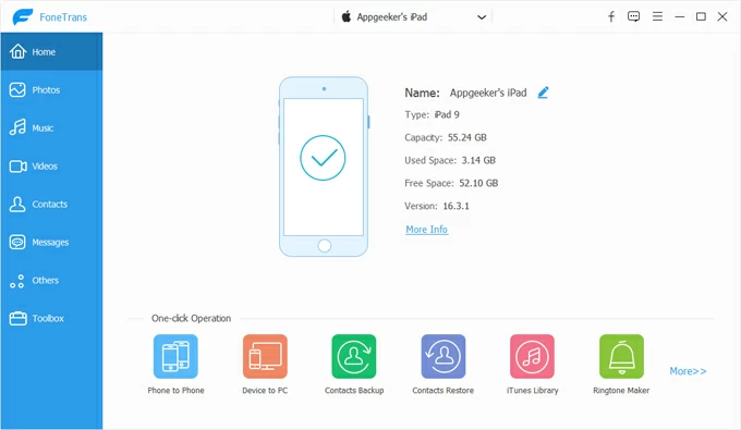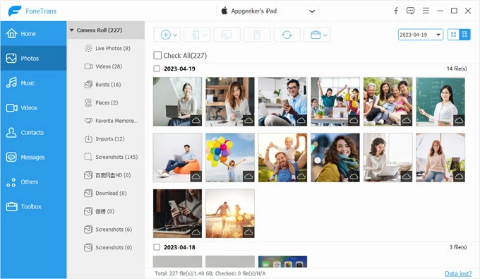 Want to transfer a bulk of photos stably fast from iPad to iPhone or vice versa? You can't miss Appgeeker iPhone Data Transfer. Unlike using AirDrop, it enables you to efficiently import plenty of photos once at a time at high speed. Plus, with this program, you can well organize your transferred photos in crystal-clear album structure. Moreover, it can transfer photos or other data across different platforms and devices besides iPad and iPhone, which include PC and Mac.