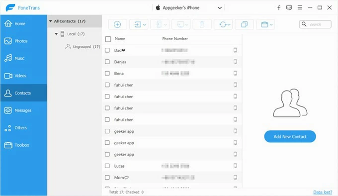 If you don't want to wipe any data during transferring, or just want to transfer your contacts to a new iPhone without using iCloud or iTunes, Appgeeker iPhone Data Transfer is a relatively robust option that lets you move contacts and other data between older iOS 5 all the way to iOS 15 and higher. It has an obvious advantage over iCloud and iTunes, that is, it won't reset your new device and remove any exiting data, which iCloud and iTunes sync does.