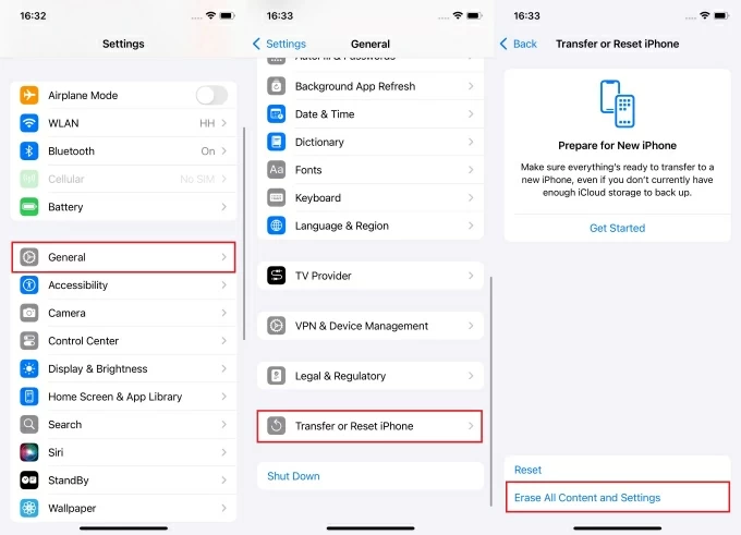 2. Erase your new iPhone 17. Navigate to Settings > General > Transfer or Reset iPhone and choose Erase All Content and Settings.