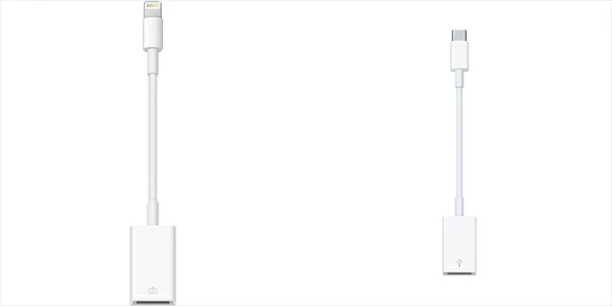 Tip: If you are using iPhone 15 and later models, prepare an Apple USB-C to USB Adapter; if you are using iPhone 5 to iPhone 14 models, prepare a Lightning to USB 3 Camera Adapter or Lightning to USB Camera Adapter.