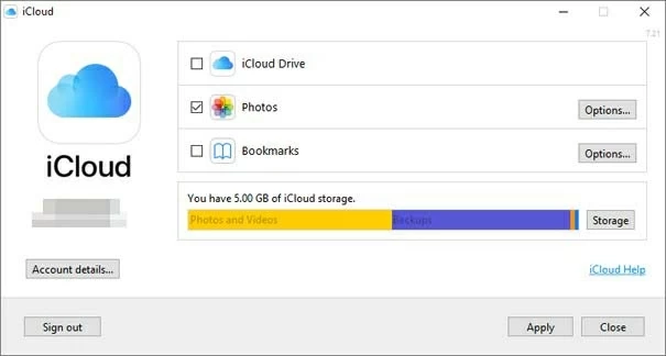 4. Ensure iCloud Photos is selected. You can choose to "Download new photos and videos to my PC" and specify the path.