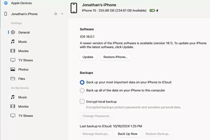 1. Open Apple Devices app on your computer that's running Windows, and connect your iPhone.