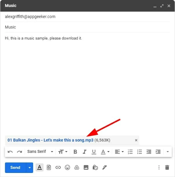 3. Click the paper clip icon, and add one or multiple songs as attachment(s) to your email.