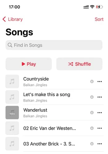 Once connected, click the Music menu on the left pane. You will see your music library with all songs listed on the right pane.