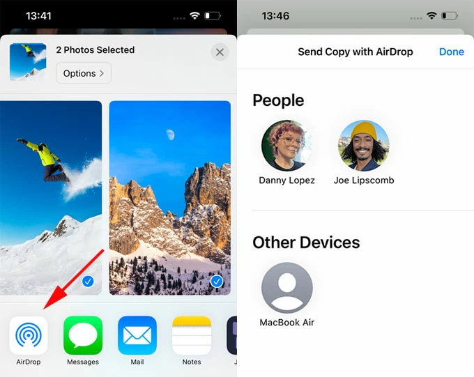 Thanks to AirDrop, iPhone switching of specific data is a straightforward task. You can seamlessly send photos, videos, contact cards, documents and more directly between one iPhone and new iPhone 17, 17 Air, 17 Pro, or 17 Pro Max after the setup process is already completed through wireless connection. The process is tedious for large file migrations.