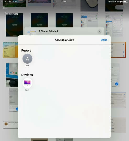 If you're using a macOS computer, simply turn on the AirDrop and share pictures from your iPad wirelessly. For Windows users, iCloud Photos serves as a wireless option for cross-platform photo syncing without needing a USB cable.