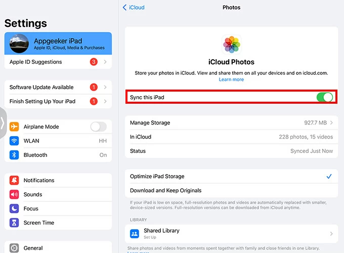 Note: When iCloud Photos is enabled, any photo changes and deletions you make on your iPad will sync with your computer automatically.