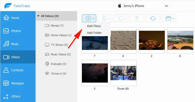 5. To transfer a video from your computer to iPhone, browse for the video from the local media library, drag and drop it into the window.