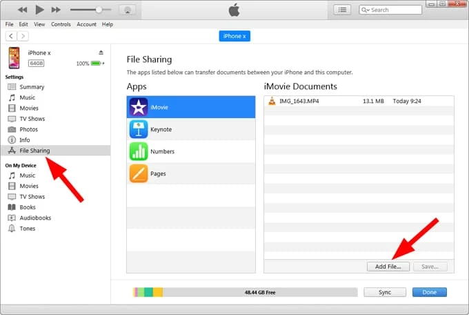There's a second option Within iTunes called File Sharing, which allows you to transfer files, including videos, movies, TV shows, between your iPhone and PC using apps that support file sharing. One of the benefit of using File Sharing is that you can transfer a video from your Windows 11 computer to your iPhone, or vice versa.