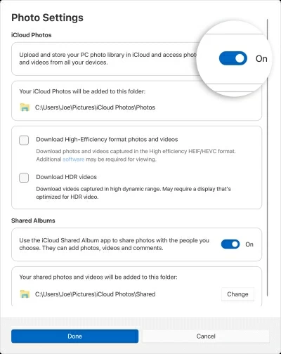 6. Click Done, and the iPhone videos stored in iCloud will be automatically synced to your Windows 11.