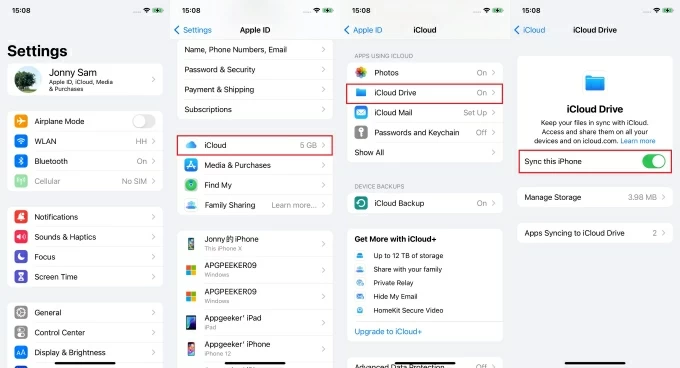 5. Ensure iCloud Drive is enabled on your iPhone. Head to Settings > [Your Name] > iCloud, then tap "Drive" or "iCloud Drive" and make sure the "Sync this iPhone" option is turned on.