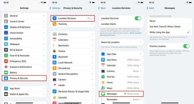 For any location-based apps and services to use the location information of your iPhone, the Location Services feature should be turned on. If it says location not available on iMessage, check the Location Services settings firstly.