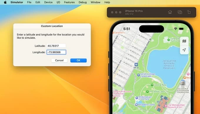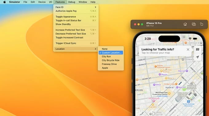 To get Xcode automatically spoof GPS on iPhone, simply click Debug > Simulate Location on the menu bar and select a location from the presets, and the simulations should be done.