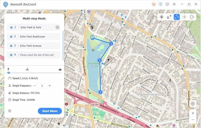 If you want to auto-walk in Pokémon Go without physically moving, the iPhone Location Changer mentioned above lets you simulate location movements along a custom route: Simply return to its main interface and choose either One-stop Mode or Multi-stop Mode to create your own iPhone GPS route for Pokémon Go. Alternatively, you can use the Joystick Mode to control your iPhone's location movement on Pokémon Go with a virtual joystick.