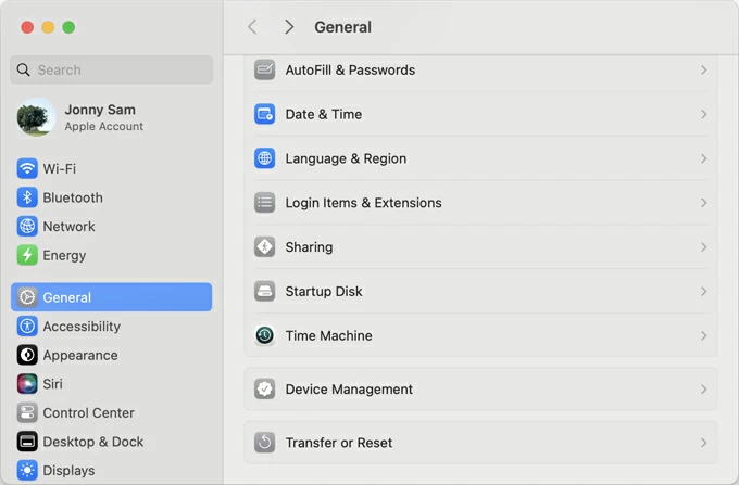 Enable Time Machine to back up Mac: open System Settings > General > Time Machine > Connect an external Hard drive to your computer > Add Backup Disk > select your external HDD as the backup disk > Toggle the "Back Up Automatically" switch on.