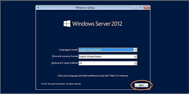 2. Once the step above is completed, your computer system will boot from the bootable disc, and a setup screen pops up. Select the language and click Next.