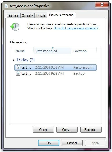 If by chance you've switched on the System protection setting, there's another easy recovery option to take into account: using the Previous Versions component. Follow the appropriate instructions below to recover everything removed from Windows 7 Recycle Bin.