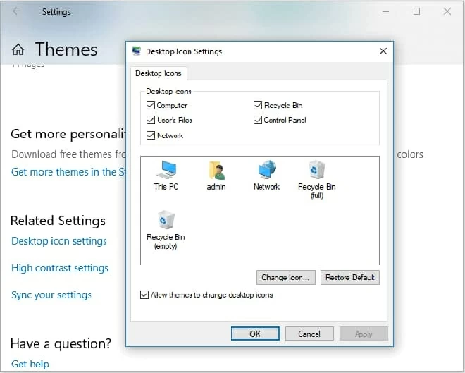 2. Select Themes, and then Desktop icon settings.