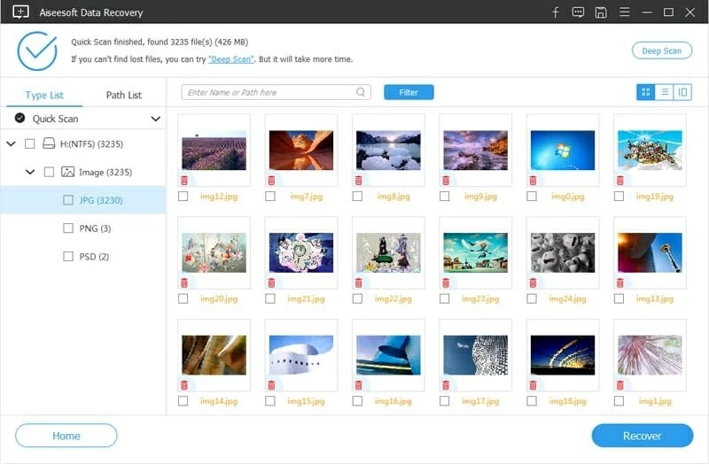 This can be embarrassing but thankfully, it isn't the end of the world, especially if you're using Data Recovery, which has a couple of smart mechanisms to retrieve deleted photos in Windows 10 that cannot be found in the built-in Recycle Bin. It enables you to effortlessly recover different image file formats like JPEG, JPG, TIF, PNG, TIFF, BMP, PSD, GIF, RAW, RGB, and many more.
