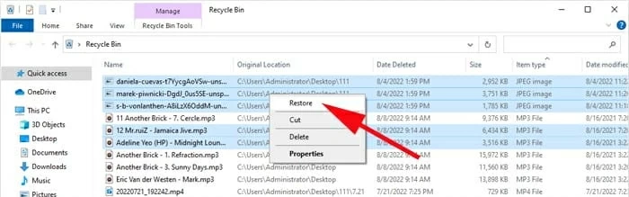 Follow these steps to restore photos from Windows 10 Recycle Bin to their original locations: