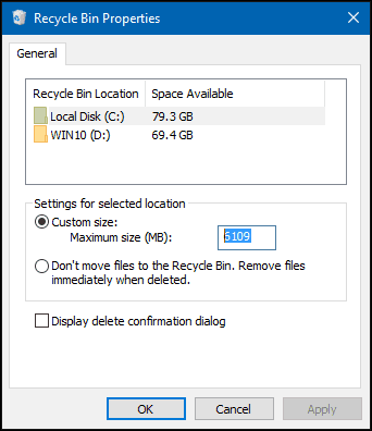 If you want to ensure that more deleted files go to the Recycle Bin and avoid exceeding the size limitation, you can adjust the space allocated to Recycle Bin to increase the maximum size of files that you can delete to the Recycle Bin.