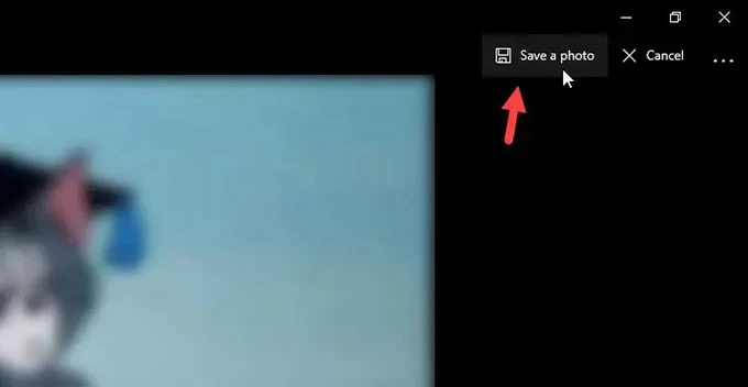 Click on the "Save a photo" button located in the top-right corner. By default, when you capture a still image from a video in the Photos app, the captured image will be saved to the "Pictures" folder on your Windows 10 computer.