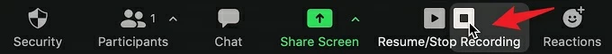 Use the Stop Recording button to end the recording on Zoom meeting.