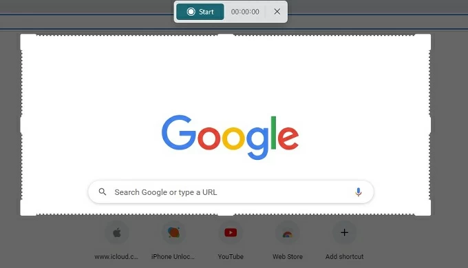 5. Drag the cross cursor to choose the area you want to record from the laptop screen, be it a full-screen video, or a specific window or app.
