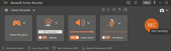 Step 3. Before starting to record the game, you'll want to choose which audio to be included, microphone voice and system sound are supported. You can even enable webcam option to create picture in picture recording.