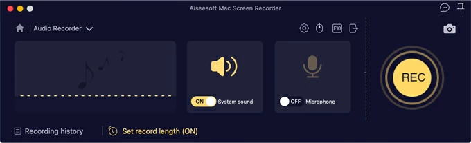 Here we take Audio Recorder as an example. The page below will pop up immediately. Turn on the System Sound. If you don't need the external voice from the microphone, you can turn the mic off. Later, click on REC.