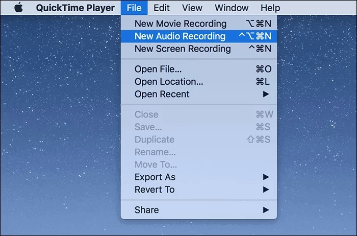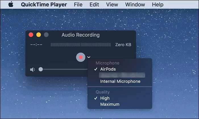 Though QuickTime Player doesn't support recording internal audio on a computer, it still serves to capture your Mac screen and the audio from the microphone with complete ease. It's one of the most highly efficient tools designed by Apple. Find below the detailed procedure to record external sound with QuickTime Player: