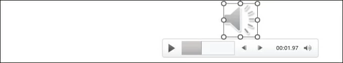 Step 6. Once you exit the slideshow recording with Esc key, or click on End Show, you will see a small picture in the bottom right corner of the slideshow that will be applied to all the slides you recorded. The picture is an audio icon or a still image that allows you to adjust the audio volume, start and pause audio/video in its control bar by clicking on it.