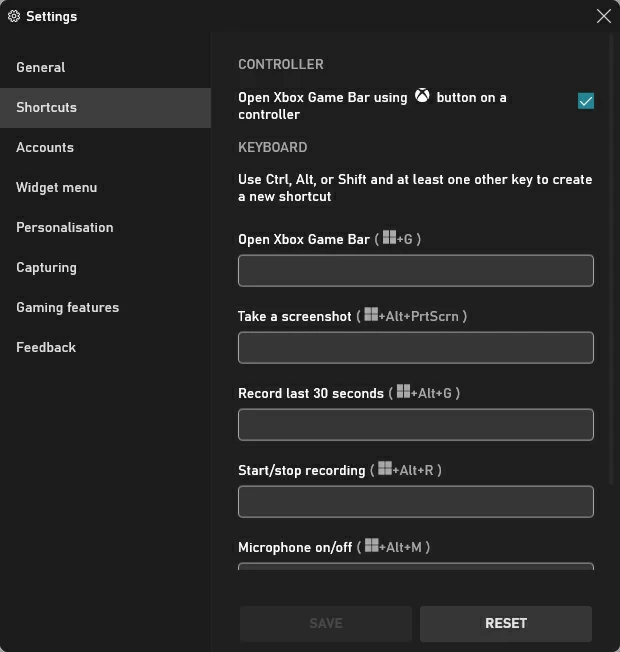 First, use keyboard shortcuts to quickly run a recording without going into the Game Bar. Windows 10 users can manage and control the shortcuts in Settings > Game Bar > Xbox Game Bar, while Windows 11 users need to achieve that in Game Bar app. Below are a few of the useful shortcuts you may want to use: