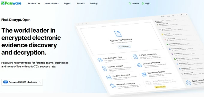 Developed by Passware - a leading password recovery software developer, Passware Kit is a powerful password recovery tool for forensic teams, businesses and home office with up to 70% success rate. It offers a comprehensive & quick solution to recover or reset passwords for local Windows accounts and Microsoft Live accounts, Word, Excel, Outlook, Access mdb and more (over 300 file types supported. It's widely used in digital forensics, law enforcement, and enterprise IT for data access and investigation.