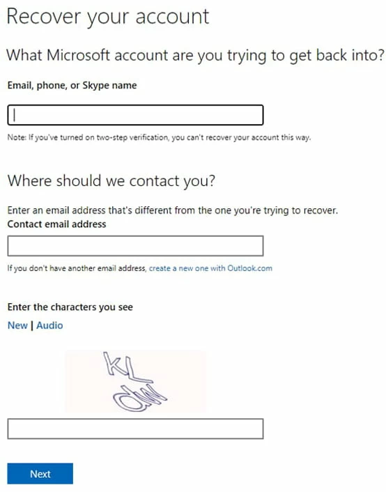 3. Verify your account by a recovery email, phone number, or Skype name associated with your Microsoft account.