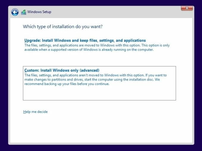 6. When prompted, select Custom: Install Windows only (advanced). This enables you to delete all existing partitions (including the password-protected one), clearing the path for a fresh OS installation.