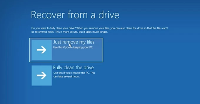 5. Follow the on-screen prompts, and selecting Fully clean the drive is crucial for a password-free reset for Lenovo laptop.